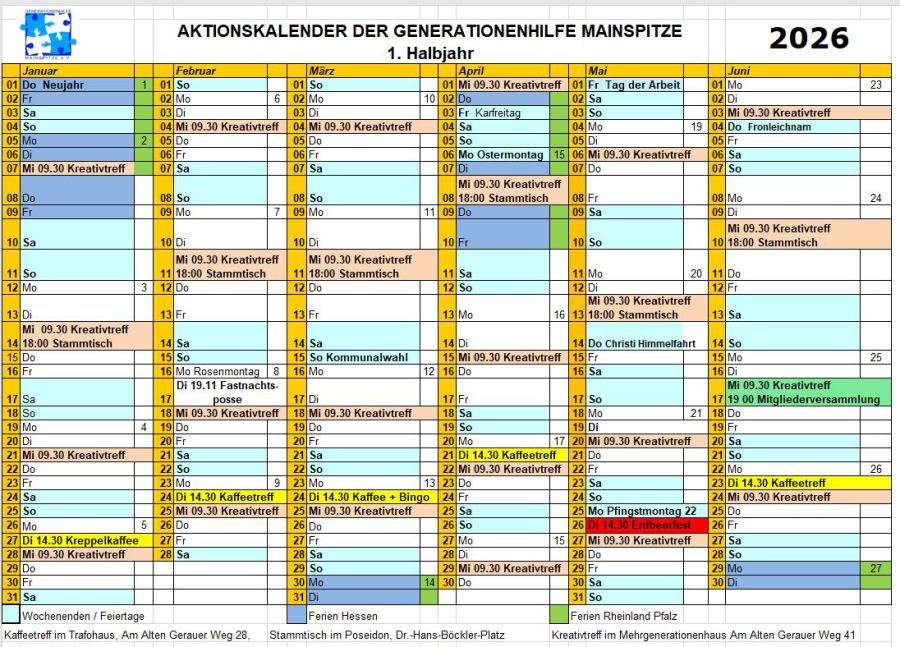 Aktionskalender 1. Halbjahr 2026